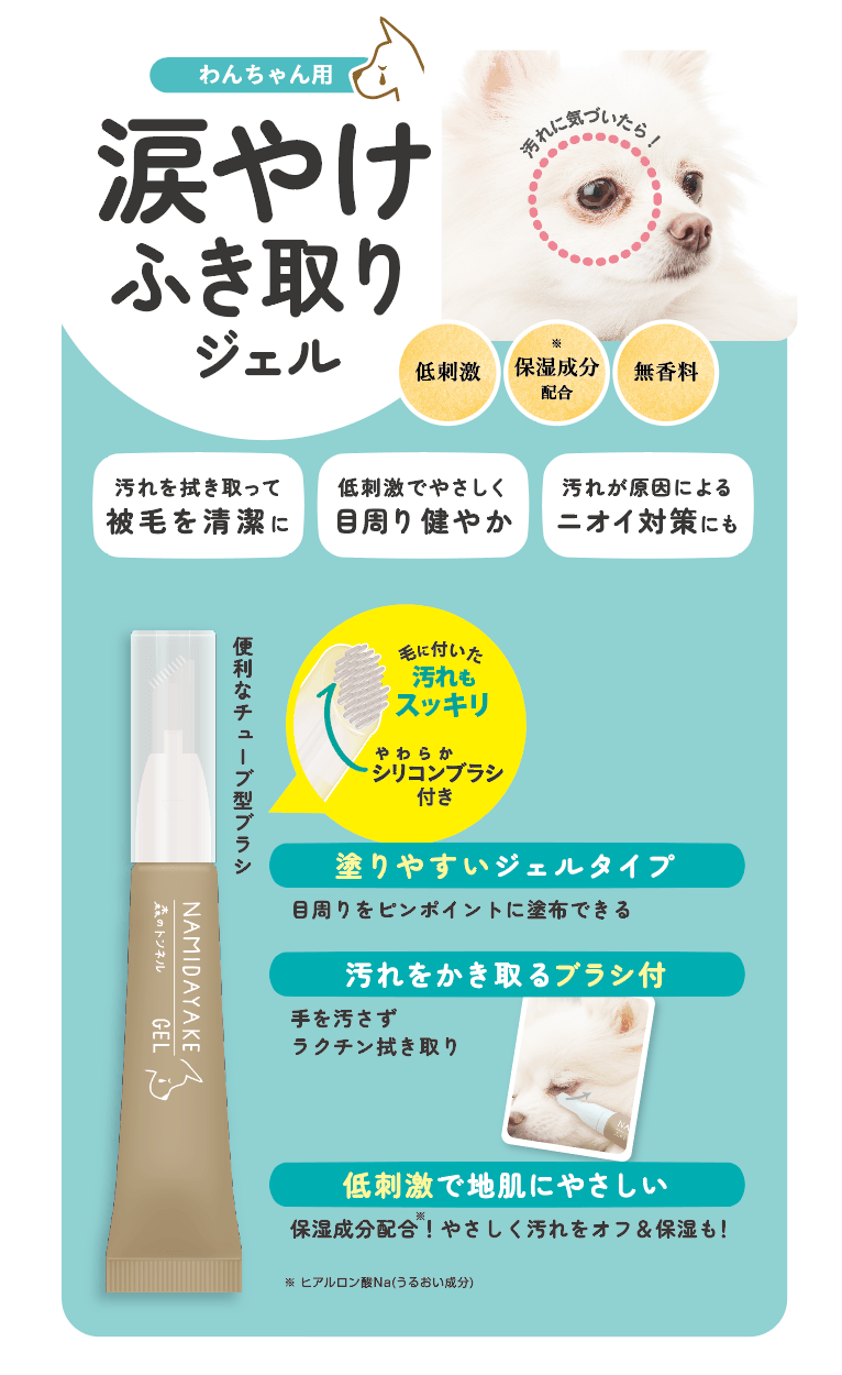 「涙やけ」のお悩みに、「涙やけ拭き取りジェル」