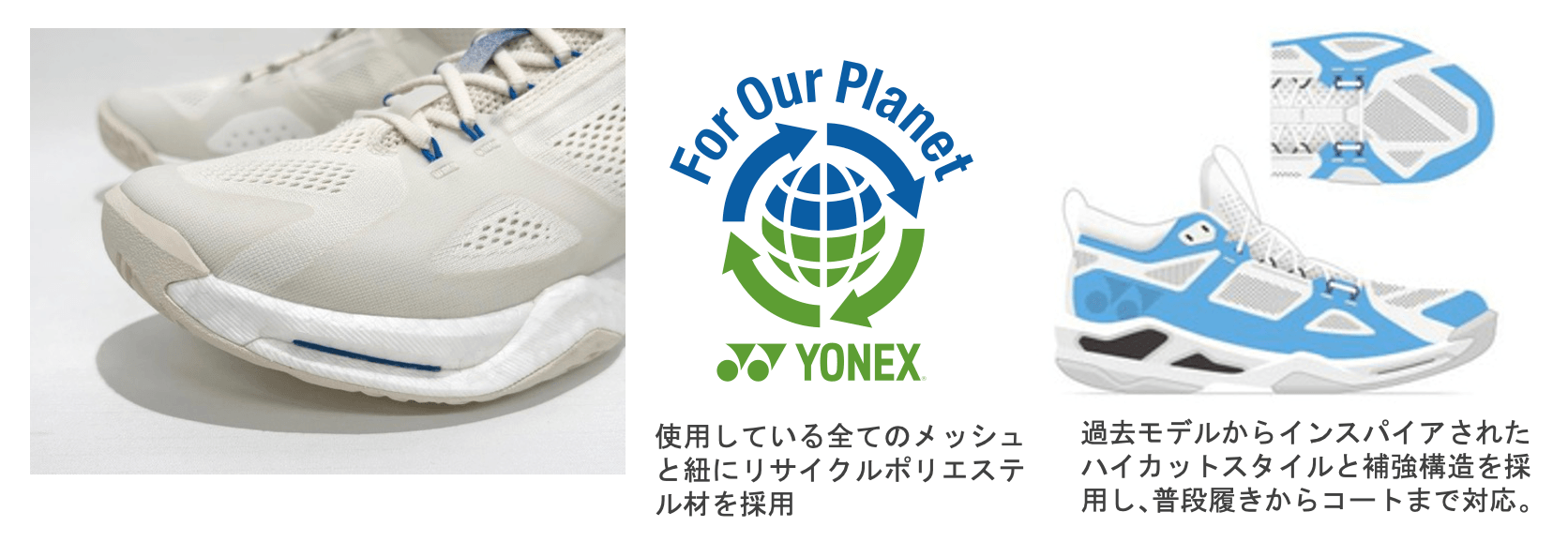 本製品は、ヨネックスの最新素材「POWER CUSHION® REV」と「3D POWER CARBON」を結合させた新構造「Grpht Thrttl」を最大限に体感できるコンセプトシューズです。