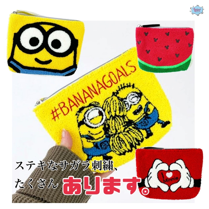 素敵なサガラポーチ入荷しています!サガラ刺繍がハイクオリティすぎるのでサガラ特集やっちゃいます♡ディズニーやミニオンなど