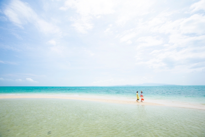 「幻の島」へは専属カメラマンが同行するので撮って欲しい写真を時間内で、思う存分撮影してもらえます。まるで海と空とを独り占めしたかのような360度パノラマビューを楽しめる、絶景のロケーションで思い出に残る写真を撮影。撮影した写真はデータでお渡しするので、インスタグラムやツイッターなどのSNSに投稿して友人同士でシェアすることもできます。エメラルドグリーンの海や白砂のビーチ、青い空など、沖縄離島で感じることのできる景色を見ながら、一生に一度の思い出づくりのお手伝いを行います。