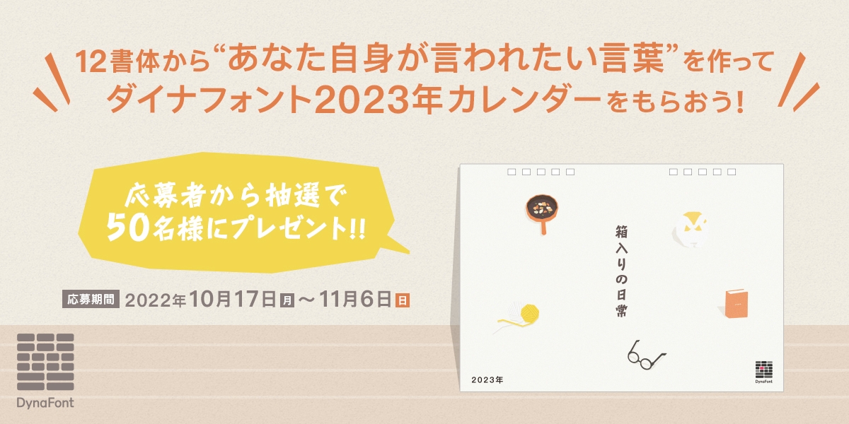 激動の時代に文字がチカラになる  “あなた自身が言われたい言葉”を10/17~11/6まで大募集! 抽選で50名様に「ダイナフォント2023年カレンダー」プレゼント | NEWSCAST