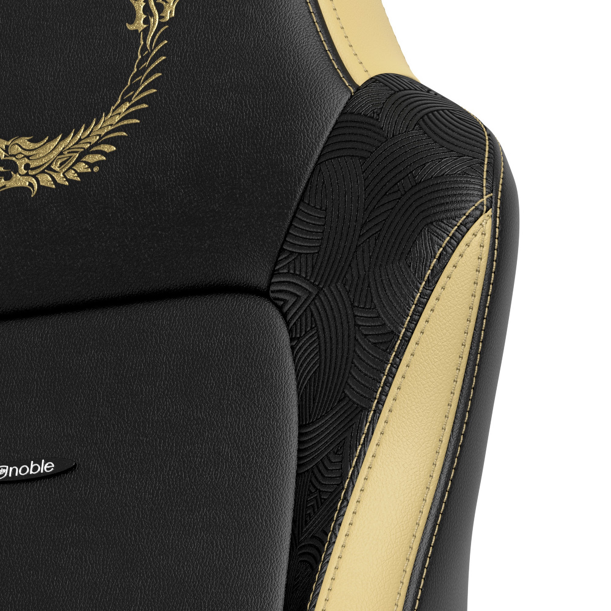 noblechairs x Bethesda公式ライセンスプロジェクト第3弾は、オープンワールドRPGの傑作として名高い『The Elder Scrolls Online』。独創的で知性に富んだゲームの世界観とnoblechairsの高貴なデザインが合体し、王座のような威厳あるゲーミングチェアが完成。ブラック&ゴールドのディテールが美しく輝くコラボレーション。