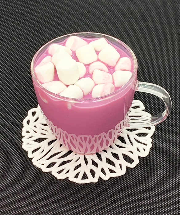 ルビーピンク色のフルーティーな味わいと、フレッシュな酸味が味わえるあたたかいチョコレートドリンク。ふんわりマシュマロを添えて。
