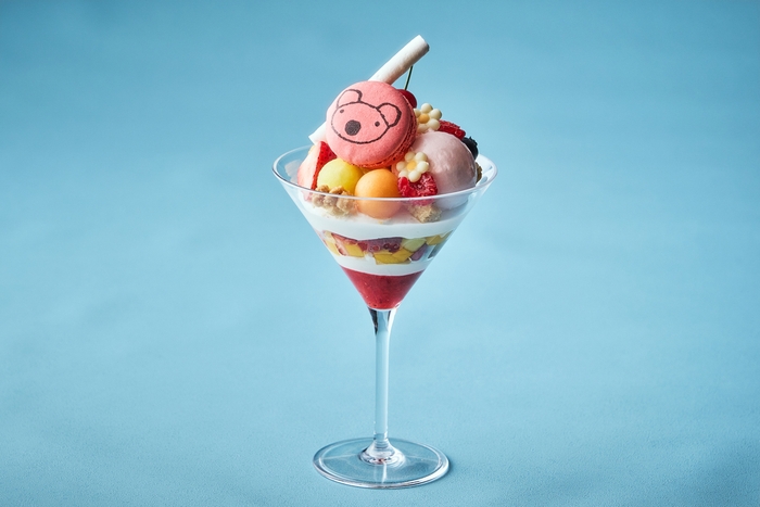クリームソーダからペネロペの顔がのぞくかわいらしい一品。見た目も味わいも涼しげで爽やかなドリンク。ペネロペの大きなお鼻がグラスに乗っているのがポイント。