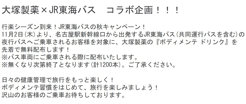 ⇒公式Twitter https://twitter.com/JRtokai_bus/