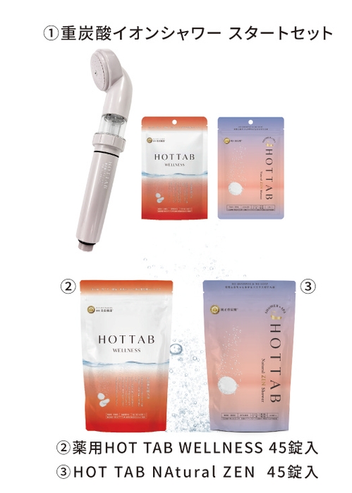 (重炭酸イオンシャワーヘッド/薬用 HOT TAB WELLNESS/HOT TAB Natural ZEN 各9錠)