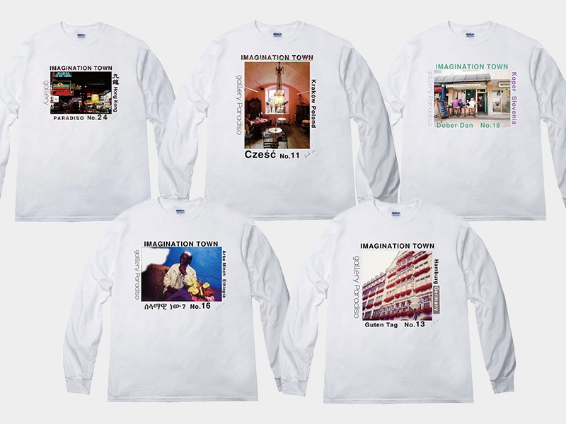 また、IMAGINATION TOWNシリーズのフォトTシャツは、galleryPARADISOのオーナー今井美穂が、過去20年以上にわたる旅の中で撮影した街の風景写真を元に制作されています。作品はNo.で作成順に番号が付けられており、現在38作品まで展開中です。今後も新作が追加される予定です。