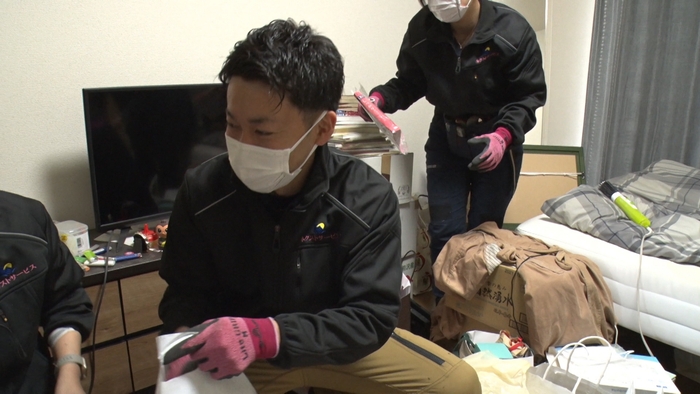 まずは「要るもの」と「要らないもの」に仕分けをして、要らないものを部屋から出す作業をはじめた長島さん。次から次へと仕分けしていくのではなく、「捨ててもいいか」を依頼者に確認します。ゴミかどうかは依頼者が決めること。明らかにゴミに見えるものでも丁寧に確認しながら作業を進めます。