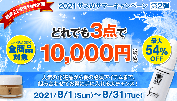 メンズコスメのザスインターナショナルを運営する、日本ブレーンキャピタル株式会社(本社所在地:東京都渋谷区、代表:野々下 一美)は、サマーキャンペーン 第二弾 (8/1~8/31) 全商品どれでも3点¥10,000 (税込) で提供いたします。