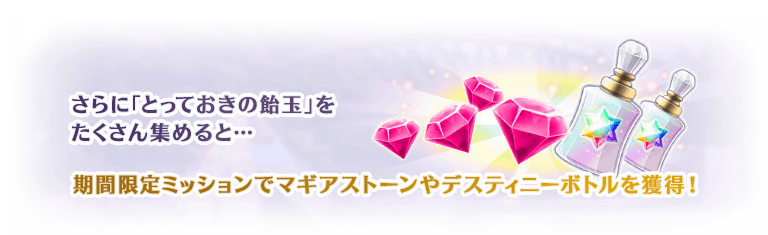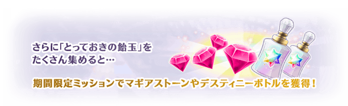 期間限定ミッションを達成することでマギアストーンや「オーバーリミッター」「デスティニーボトル」「レインボーオーブ」「マギアチップ」を獲得できます。