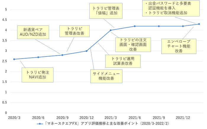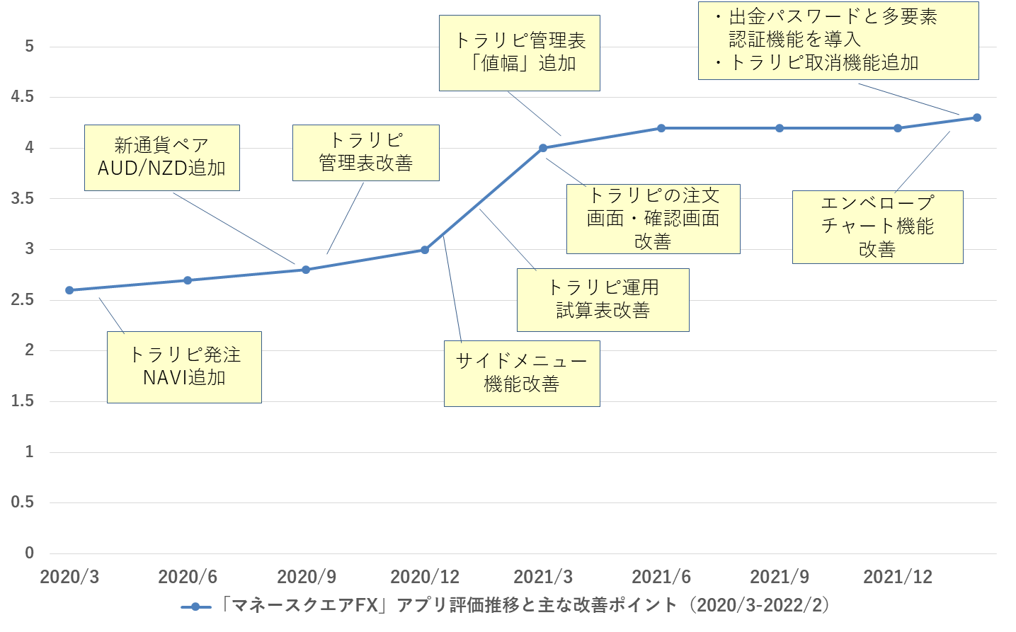 ※「マネースクエアFX」アプリ評価推移と主な改善ポイント