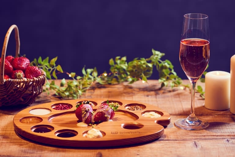 夕食後、客室に用意されたナイトストロベリーツアーの招待状を持ち、ホテルを出発します。向かう先はイルミネーション輝くハウスです。ハウスに入ると、レッドカーペットが敷かれた、いちごのレーンが並びます。ロゼシャンパンを片手にいちご狩りを楽しめるので、まるでパーティーに来たかのようなワクワクした気分になります。貸切りのハウスで心ゆくまで楽しめるいちご狩りです。