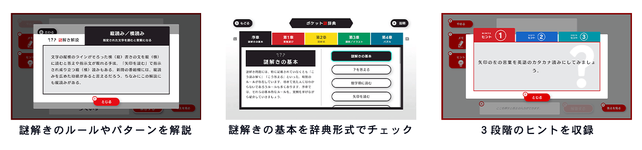圧倒的な収録数の謎と、Nintendo Switch™ソフトならではの便利な機能が詰まった「謎検スマート対策」にぜひご期待ください。