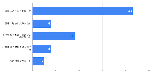 仕事や趣味のゲームなど、Wi-Fiが使えないことによりストレスを感じている方が多い様子でした。
