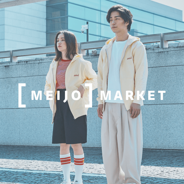 「MEIJO MARKET」は、従来の⼤学ロゴを使った「グッズ」ではなく、トレンドを反映した日常的に使えるファッションアイテムやライフスタイルグッズを展開。年 4 回程度、季節やトレンドに応じてアイテム入れ替えを⾏い、WEGO(ウィゴー)、ʼ47(フォーティーセブン)、MiiR(ミアー)、INFIELDER DESIGN(インフィルダーデザイン)とのコラボレーションアイテムなどをオンラインで販売。またこの取り組みの収益の一部は⼤学への寄付としても還元されています。