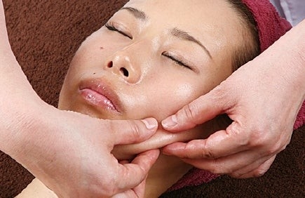 圧力をかけながらお顔をほぐし、めぐりを上げてこり、むくみを解消させる。
