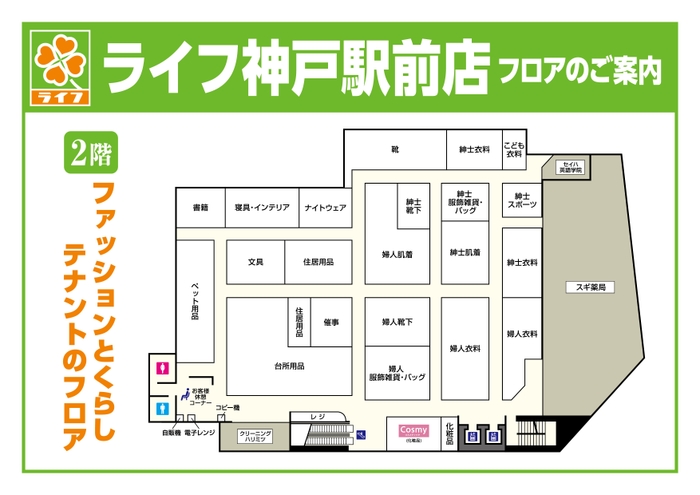 「ライフ神戸駅前店」を2/28(金)に改装オープン!2階「ファッションとくらしのフロア」の品ぞろえが広がり、毎日のお買い物がもっと便利に!
