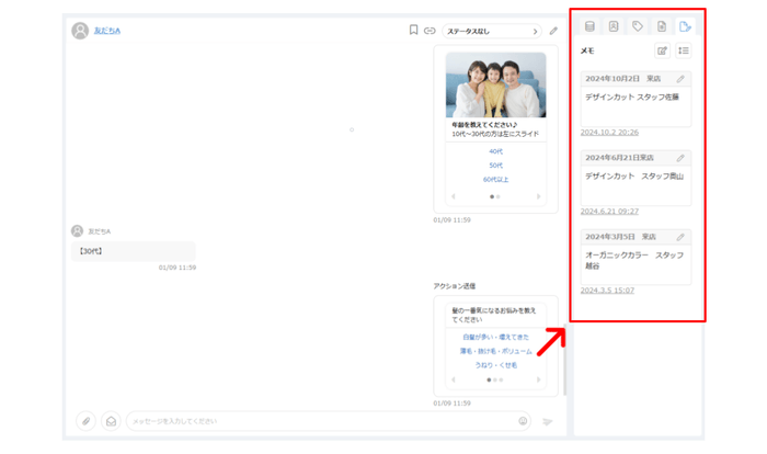 lmessageの1:1チャットで複数スタッフの顧客対応が円滑に