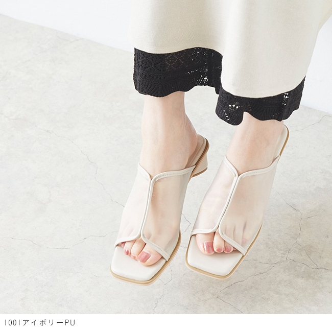 商品名 :menue (メヌエ) スクエアトゥ変形ヒールチュールサンダル