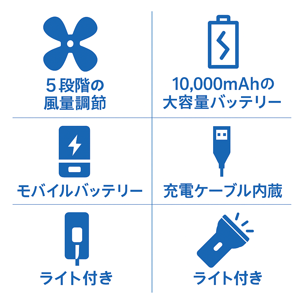 「WestFan」は冷却ファンとしてだけでなく、“大容量モバイルバッテリーとして日常使い”“TypeC・Lightning内蔵ケーブルでスマホ充電も簡単”“コンパクト設計で持ち運びもラクラク”など、「夏しか使わないから勿体ない」という心配は無用の製品です。