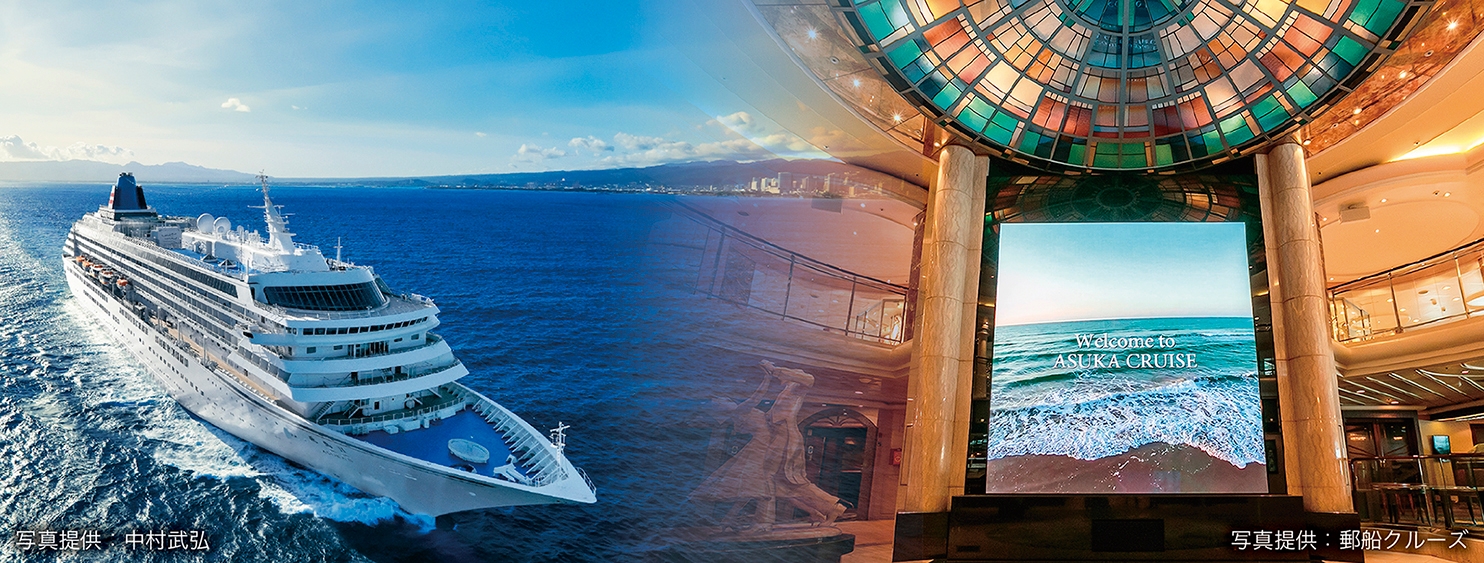 「飛鳥II」は日本船籍最大の客船で、約100日間の世界一周クルーズ、アジア・オセアニア方面へのロングクルーズ、日本の夏祭りを巡るクルーズ、1泊からのショートクルーズなど多岐にわたり展開。全室海側の客室、ゆったりとしたスペースや充実の設備、日本人乗船客の嗜好に合わせた多彩な食事やエンターテイメントが特徴。乗船客1人当たりのスペースや乗組員比率は、日本はもとより世界トップレベルで、世界のクルーズマーケットで愛される美しい船体に、和の心のおもてなしをのせて皆様をお迎えいたします。