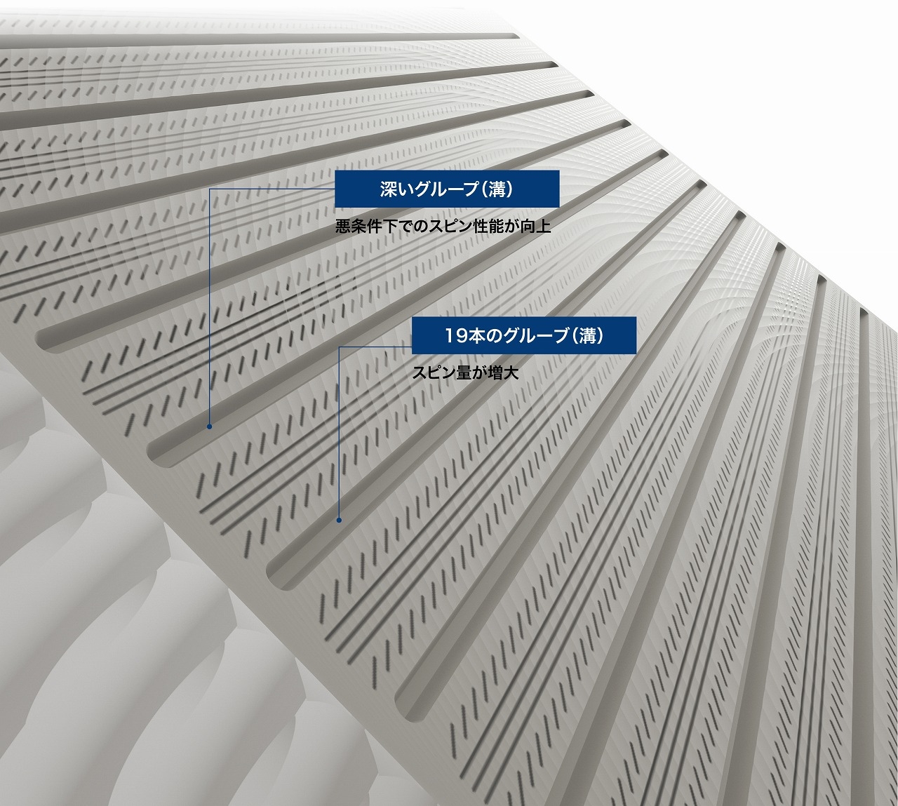 「HydraZip」フェースと「ULTIZIP」によりウエット時のスピン性能が43%アップしました。