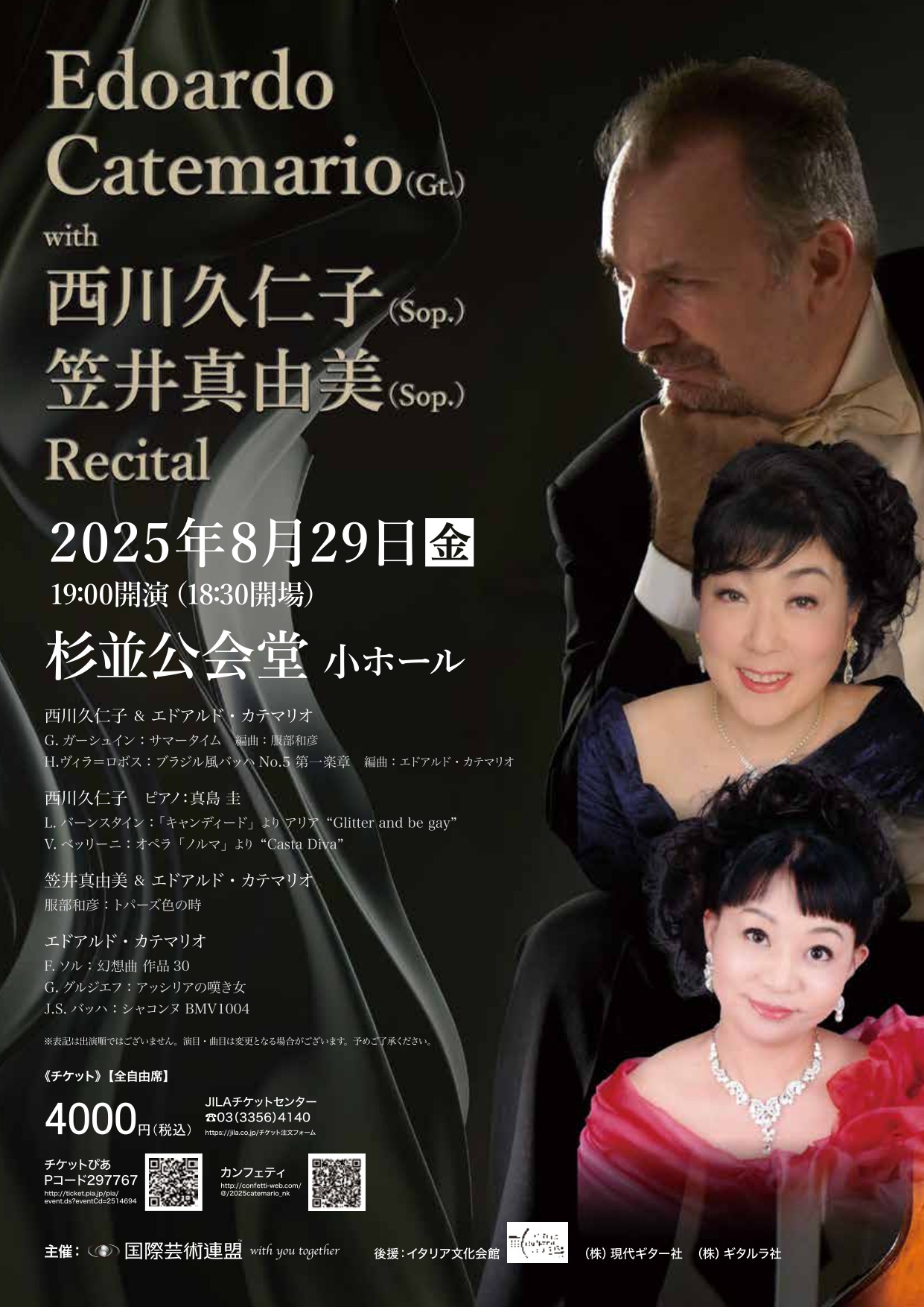 国際芸術連盟(代表:服部和彦)主催、エドアルド・カテマリオの来日公演が、2025年8月~9月の期間、東京都内にて以下の通り5公演開催されます。