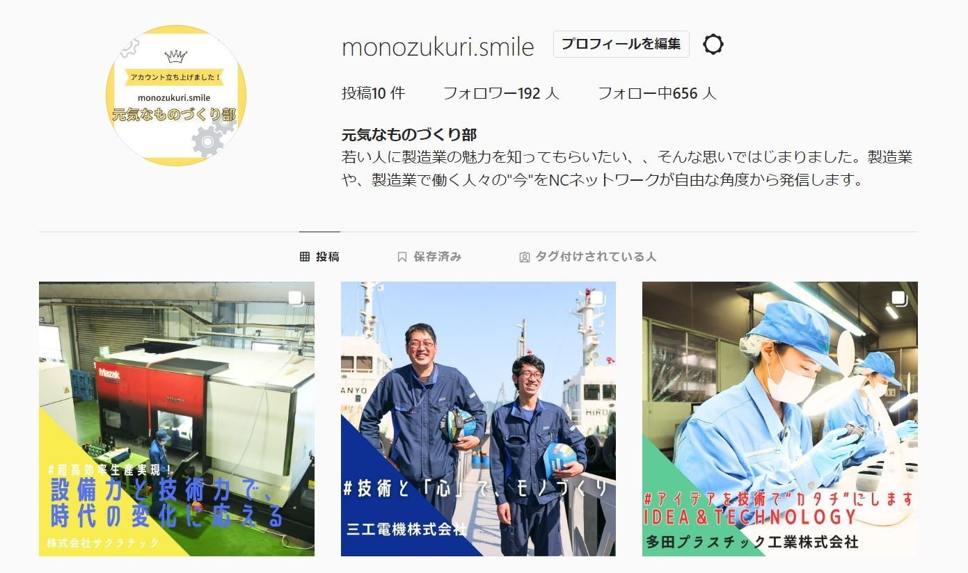 NCネットワークが製造業の魅力を広く発信 Instagram「元気なものづくり部」を開設 ~若者の製造業における3Kイメージ払拭が狙い~