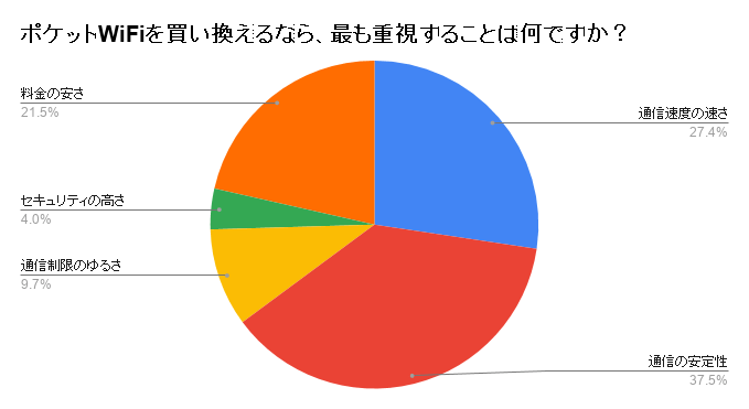 ポケットWiFi利用者は多くは料金面よりもストレスのかからない通信環境を重要視しているようです。