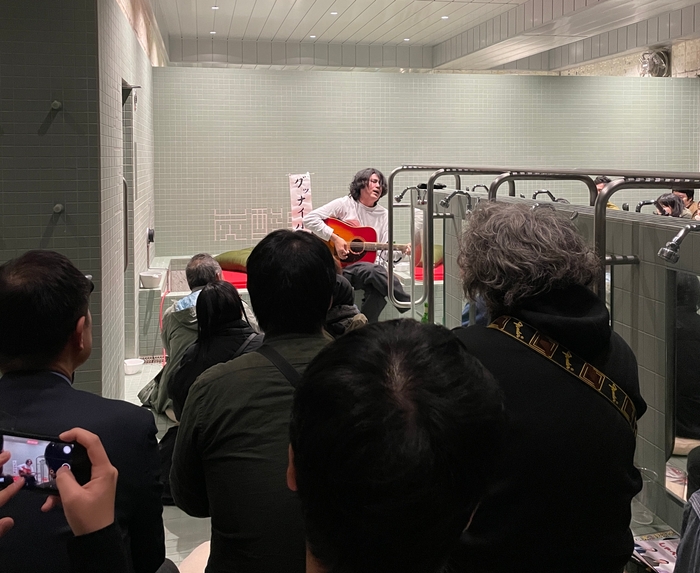 2024年1月に開催した「落語と音楽会Vol.1 如月の宴 」では林家けい木(2024年7月真打昇進)が登場。新作落語の「ぐつぐつ」と人情噺の名作「幾代餅」を披露し、会場を沸かせました。音楽ステージにはBest gigi 、グッナイ小形が出演、生歌&生音でも銭湯ならではリバーブの効いた空間を作って頂きました。
