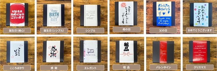 基本の誕生日からクリスマス等のイベントまで選べる12種類!