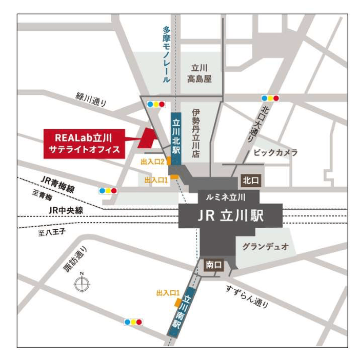 ●交通:JR青梅線、JR 中央本線、JR 南武線「立川」駅 徒歩3分