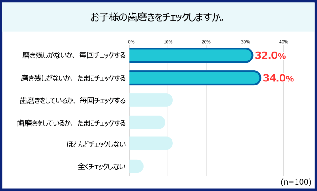 保護者は子どもの歯磨きに対して、どのように関わっているのでしょうか? 「お子さまの歯磨きをチェックしますか」のアンケート結果から見ていきましょう。