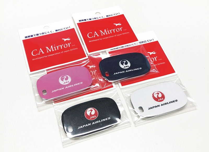 「CAミラー」はアクリル製で超軽量。割れにくく、傷つきにくい仕様。裏面のJALロゴも剥げずにきれいな状態で使えるよう工夫しています。また丸みのあるデザインは制服の生地を傷めないようにCAの配慮から生まれたデザインです。
