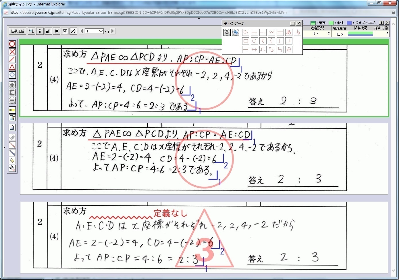 2.提出された答案やレポートは、すぐにブラウザ上で採点や添削が行えます。