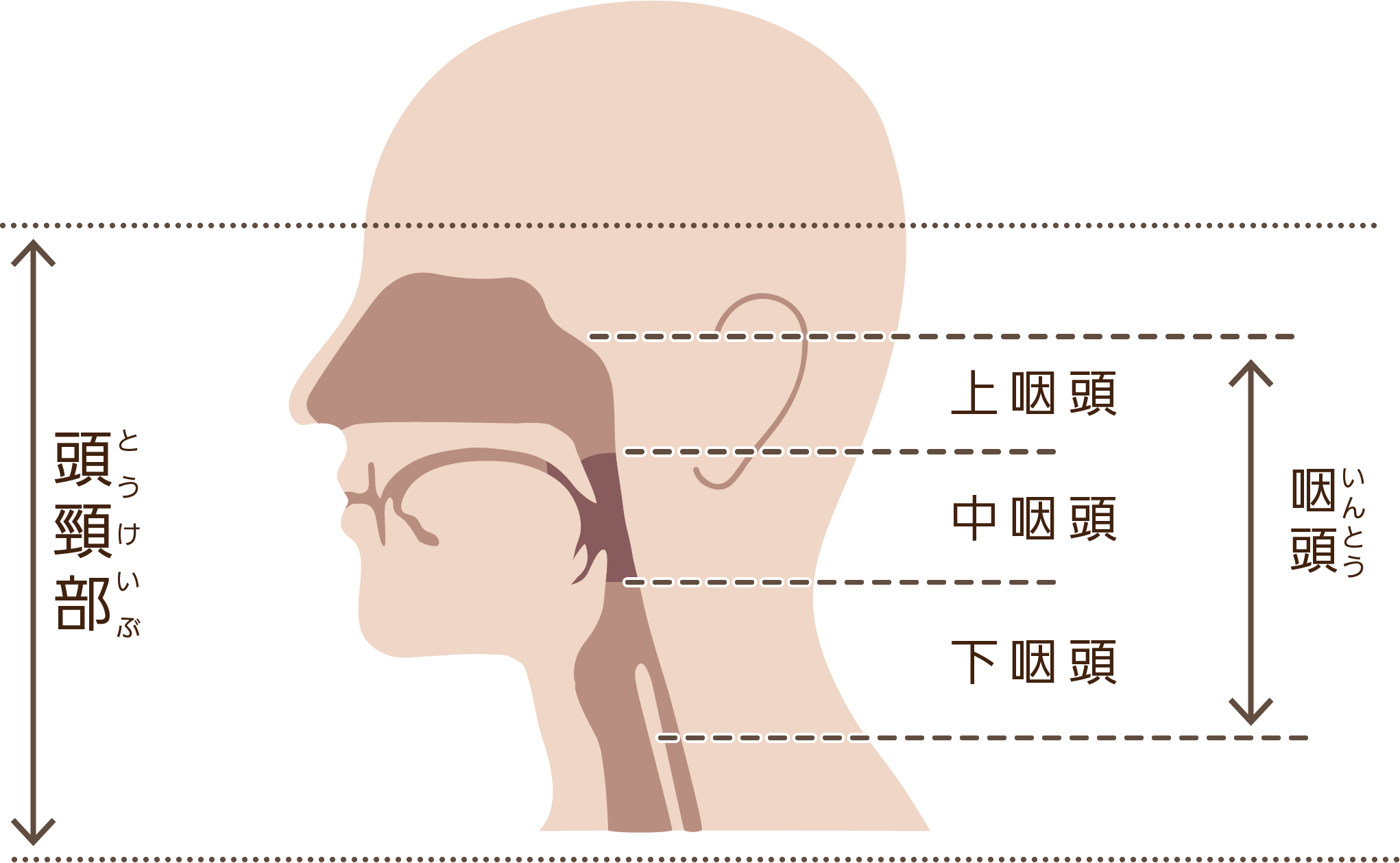 中咽頭がんは頸部リンパ節(首のリンパ節)に転移することが多いがんです。リンパ節に転移している場合や、転移の可能性がある場合などには頸部リンパ節も切除します(頸部郭清術)。