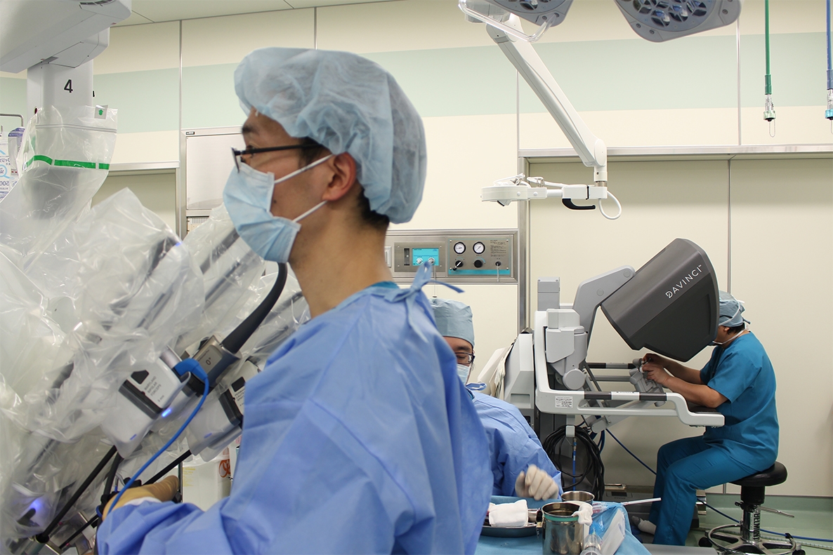 患者さんの暮らしは治療後も続きます。「がんを確実に切除すること」「極力機能を温存すること」を両立させ、会話や食事を楽しむ日常を1人でも多くの患者さんに送っていただきたい。その思いから耳鼻いんこう科・頭頸部外科で、内視鏡手術支援ロボットダビンチによる経口的ロボット支援手術(Transoral Robotic Surgery ; TORS)を開始しました。