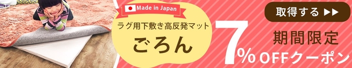 ご愛顧に感謝して、rugoo CARPET&HOME楽天店で「\ごろん発売7周年/ありがとうキャンペーン」を開催。
