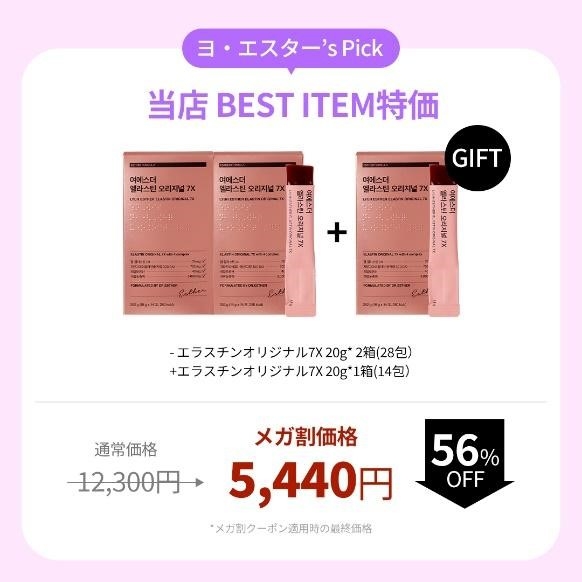 エスターフォーミュラの人気商品である「エラスチンオリジナル7X」と「GLTダイレクト5X」をより多くのお客様にお試しいただけるよう、2箱ご購入いただいた方にはさらに1箱をプレゼントする2+1特価イベントを実施いたします。メガ割ならではの特別イベントとなりますのでチェックしてください!