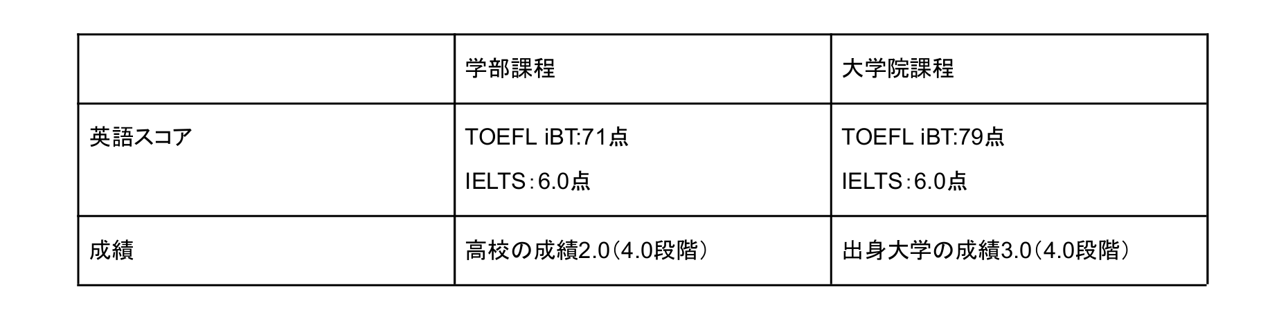 一般的に留学できる英語力は、TOEFLiBTで60点以上、IELTSで5.5以上といわれています。これと比較しても、SUU Onlineはハイレベルな英語力、成績を求めています。
