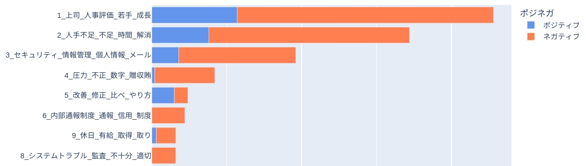 (2) トピックごとの感情(ネガティブ・ポジティブ)の比率がわかる
