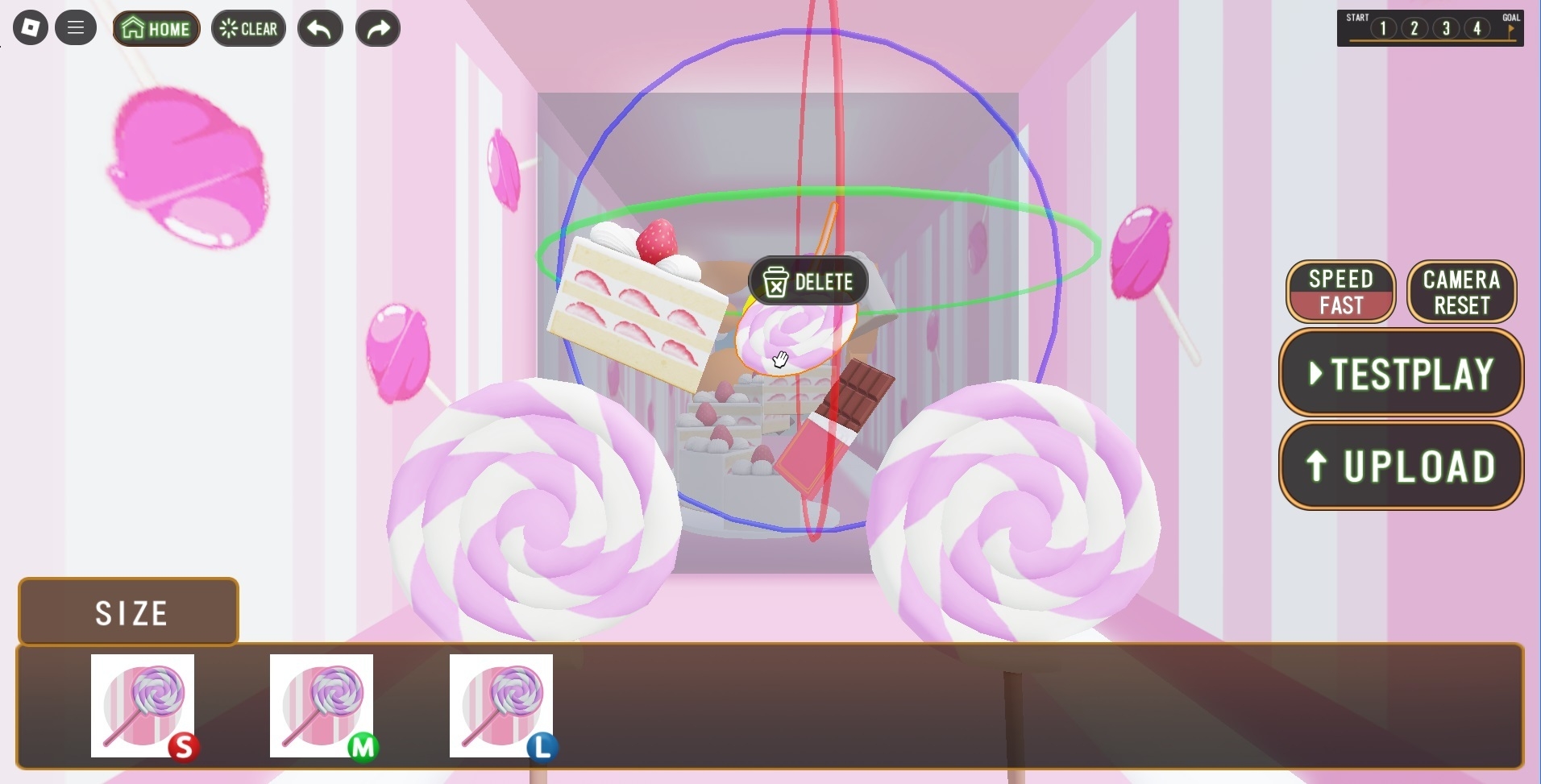 最大の特徴は、用意された障害物をプレイヤー自身で配置してオリジナルの障害物レースステージを制作できる点にあります。プレイすることで得たコインを使いゲーム内ショップで様々な障害物を獲得し、クリアすることが難しい高難易度のステージやビジュアルが美しいステージなど、プレイヤー自身の感性によって世界に1つだけの障害物レースステージの制作が可能です。