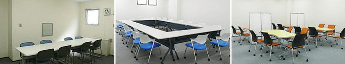 全3室(大会議室1、小会議室2)/ 予約順に、自由に使用可能です。