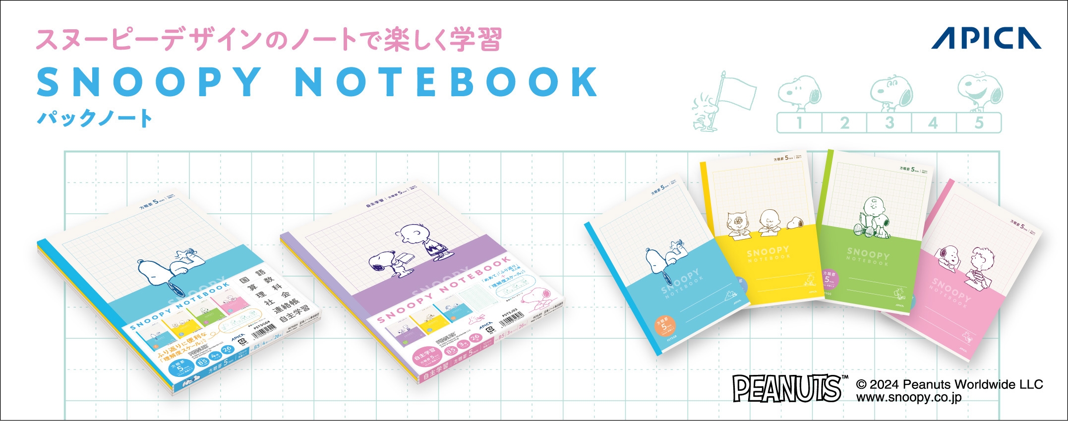 この度、世界中で愛され続ける新聞コミック“PEANUTS”より、スヌーピーのデザインで学習のやる気と楽しさをサポートする特殊罫パックノートを2024年12月下旬に発売いたします。