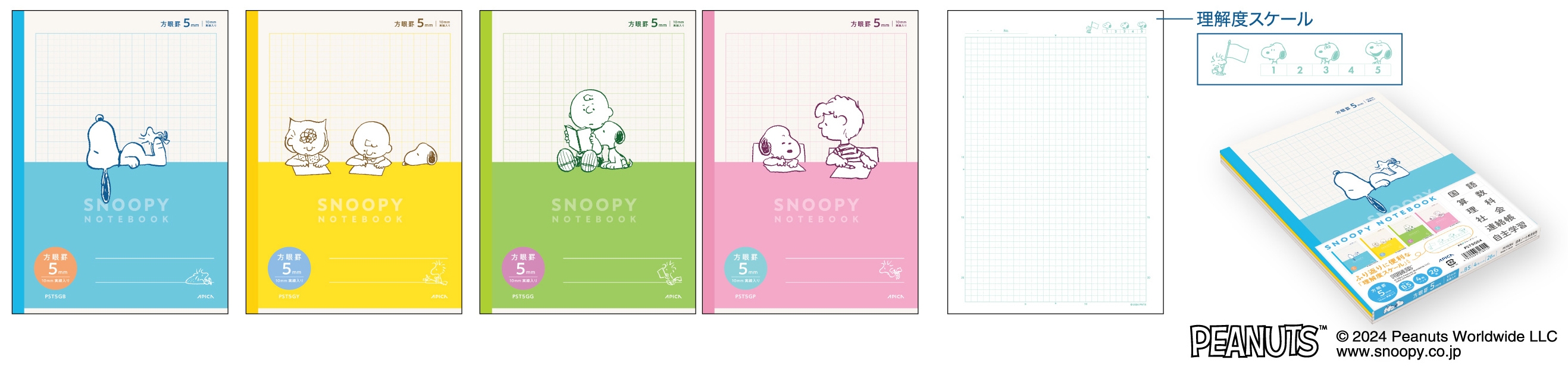 スヌーピーたちのデザインが学習を楽しくサポート! スヌーピー特殊罫パックノート 発売 発売日:2024年12月下旬より順次