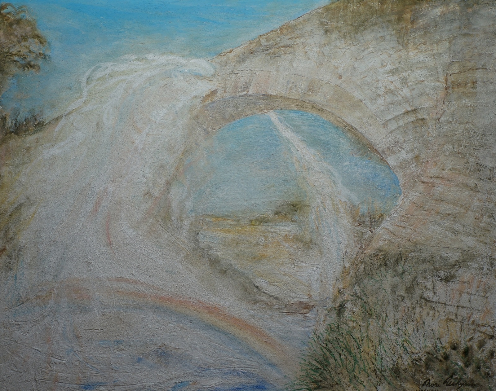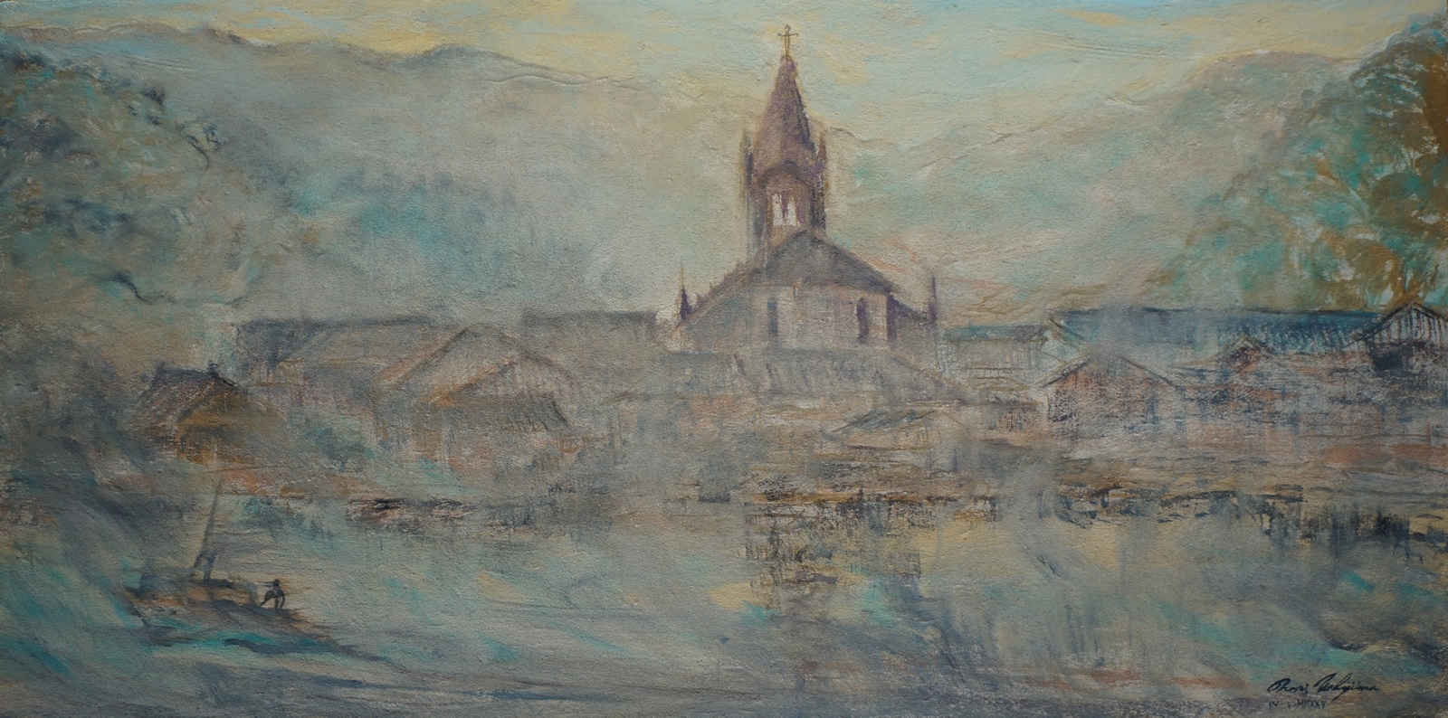 上記の通りNori Ushijimaは高校を卒業後イタリア、スペインに渡り現在の家はスペインのバスク地方サン・セバスチャンにあります。そのサン・セバスチャンで多くの作品を製作して現在は熊本へ一時帰国し、熊本の情景や風物をこの展覧会に向け大作を製作しています。それがまさしく彼しかできないテーマとして掲げました。