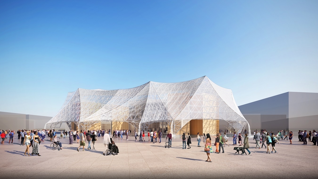 大阪・関西万博 大阪ヘルスケアパビリオンバックヤード棟」に 「OSAKA」の形に並べた“おもろい”太陽光発電システムを設置 | NEWSCAST