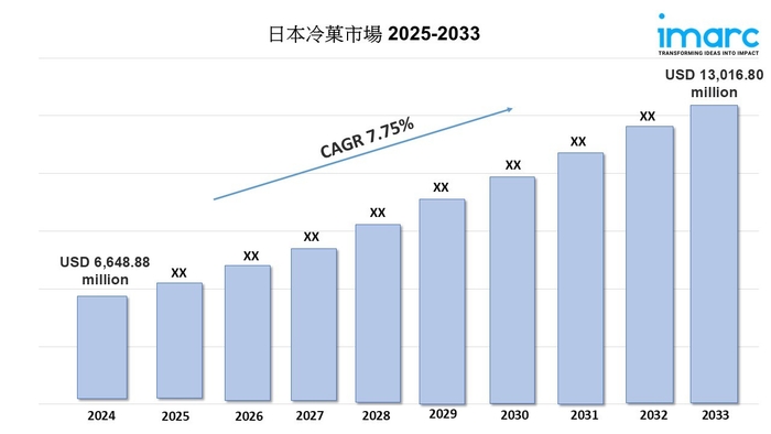 IMARCグループの最新レポートによると、「日本の冷凍デザート市場規模は、2024年にUSD 6,648.88 百万に達しました。今後、IMARCグループは、同市場が2033年までにUSD 13,016.80 百万に達し、2025年から2033年の間に年平均成長率(CAGR)7.75%で成長すると予測しています。」
