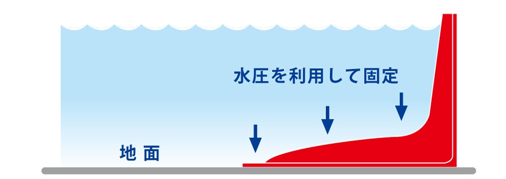 当商品は、止水パネルを組み合わせて置くだけで、水圧を利用して建物内への浸水を防ぎます。