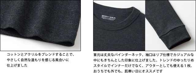おうちでも外でもあらゆるシーンで活躍。あったかアクリル混素材のロングスリーブTシャツ